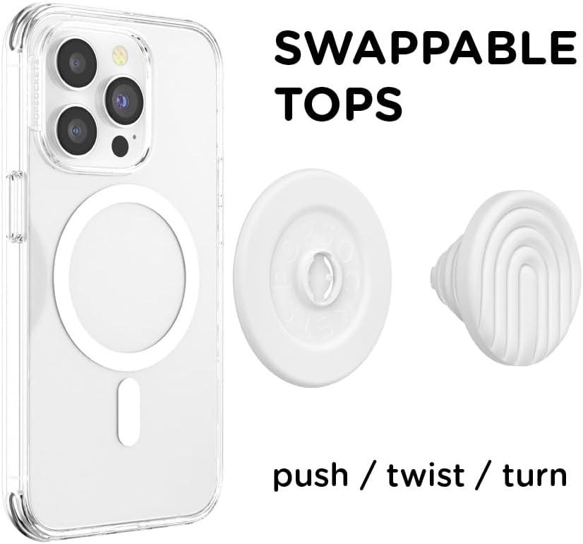 PopSockets Phone Grip for MagSafe with Kickstand, Magnetic Stand, Swappable Top, Secure Hold for iPhone MagSafe Cases, Phone & Tablet Grip, Cute PopSockets – Curves Latte(Coconut Creme)