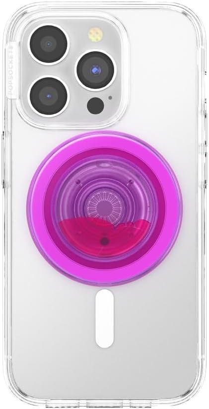 PopSockets Phone Grip for MagSafe with Kickstand, Magnetic Stand, Swappable Top, Secure Hold for iPhone MagSafe Cases, Phone & Tablet Grip – Aluminum Topo(Lava Lamp Pink)