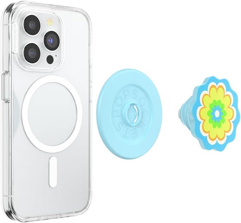 PopSockets Phone Grip for MagSafe with Kickstand, Magnetic Stand, Swappable Top, Secure Hold for iPhone MagSafe Cases, Phone & Tablet Grip – Aluminum Topo(Doodle Daisy)
