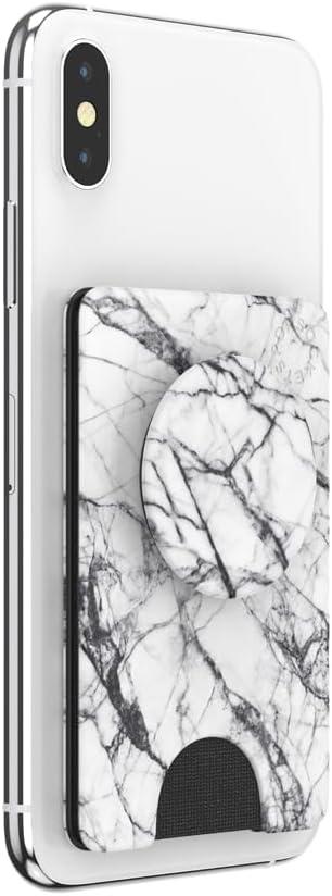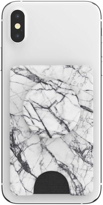 PopSockets Phone Wallet with Expanding Kickstand, Phone Card Holder – Pink Clouds(Dove White Marble)