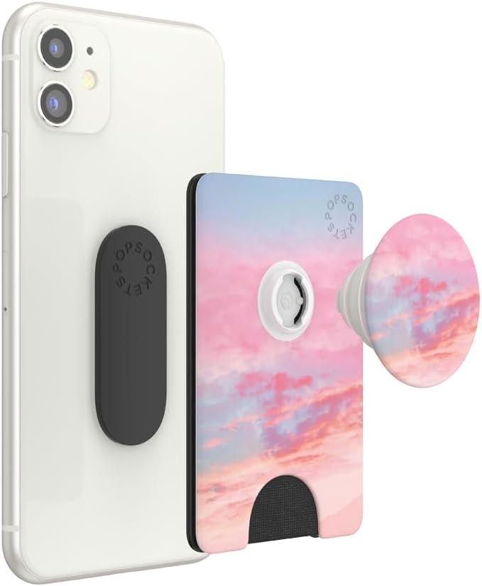 PopSockets Phone Wallet with Expanding Kickstand, Phone Card Holder – Pink Clouds(Pink Clouds)