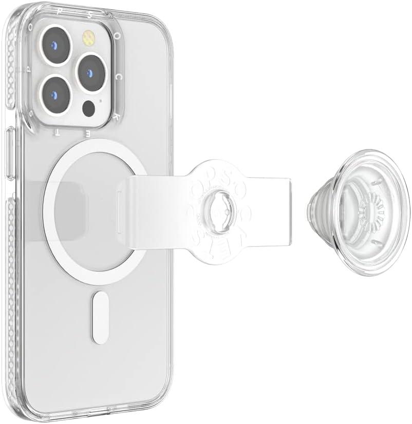 PopSockets Phone Grip for MagSafe with Kickstand, Magnetic Stand, Swappable Top, Secure Hold for iPhone MagSafe Cases, Phone & Tablet Grip – Clear(Blanchette)