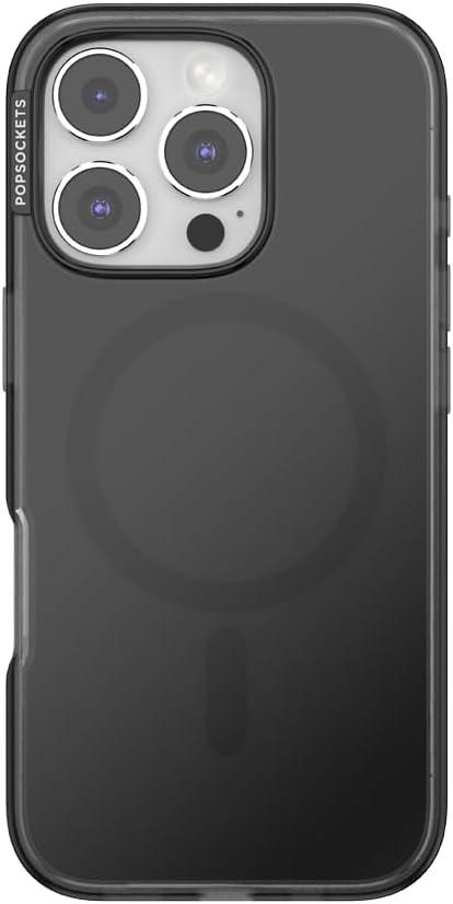 PopSockets iPhone 16 Plus Case Compatible with MagSafe, Phone Case for iPhone 16 Plus, Wireless Charging Compatible, Case Only – Amber(Black Transluscent)