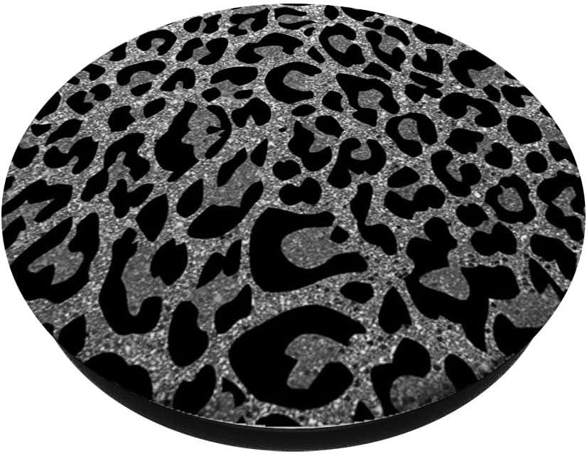 Black Silver Leopard Print PopSockets Adhesive PopGrip(Magnetic PopGrip)