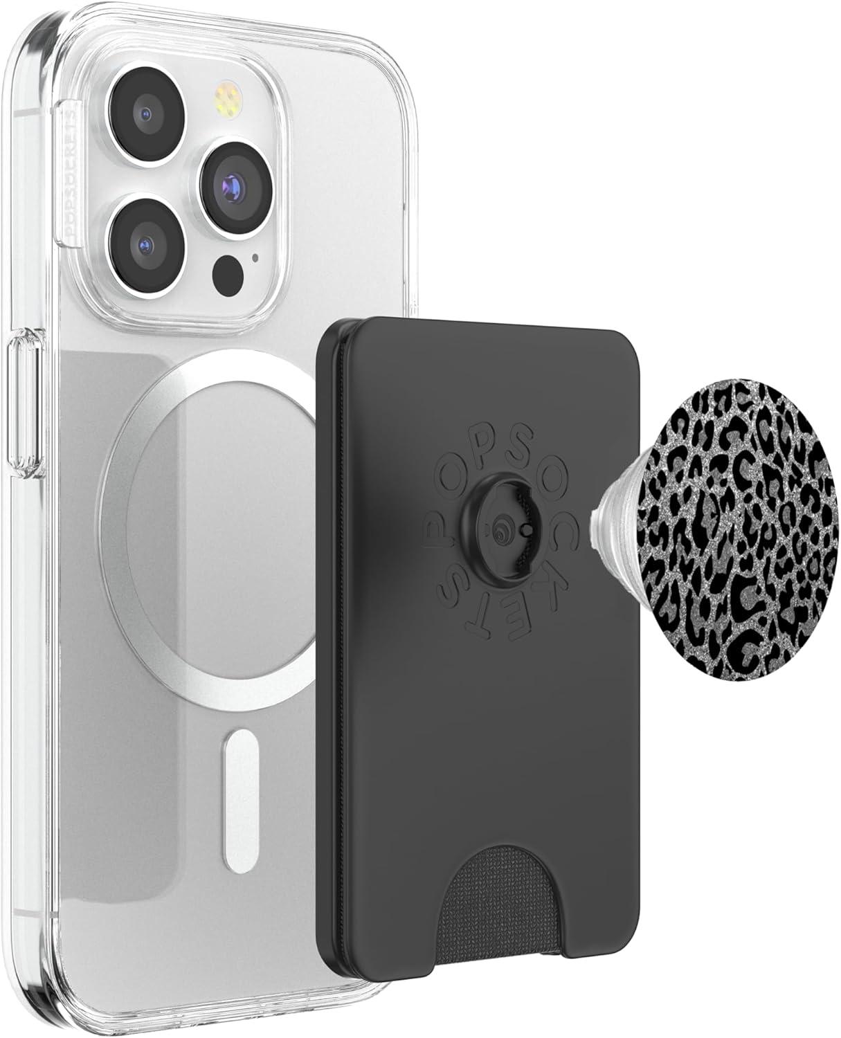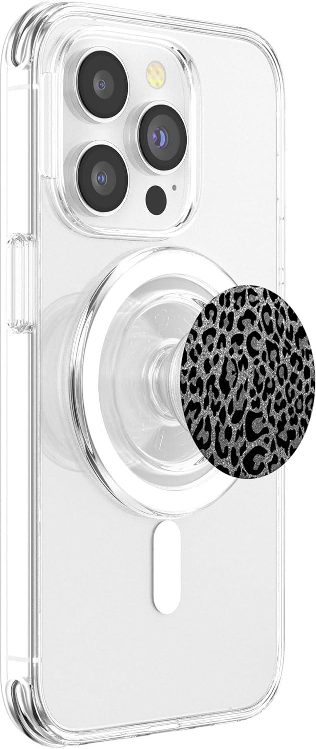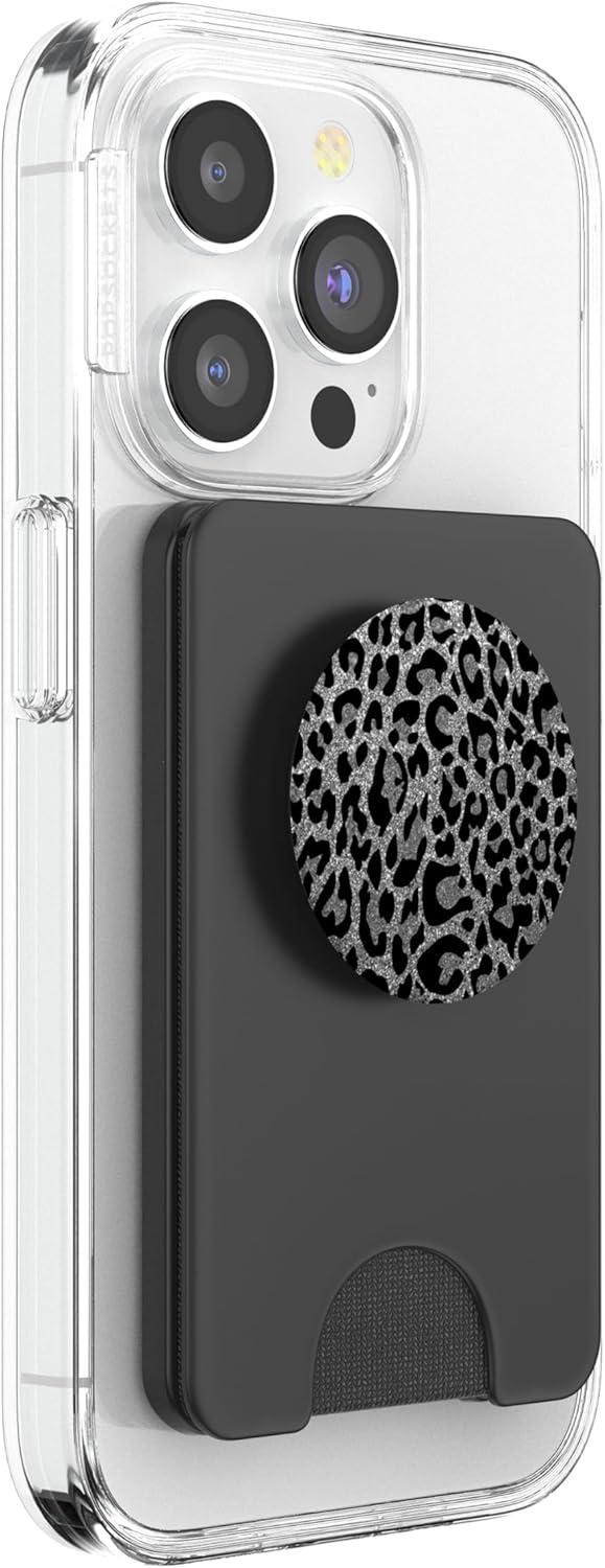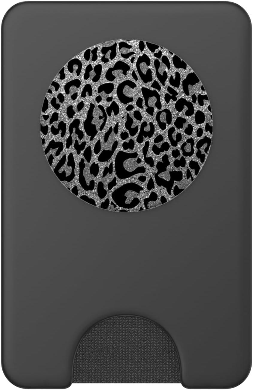 Black Silver Leopard Print PopSockets Adhesive PopGrip(Magnetic PopWallet)