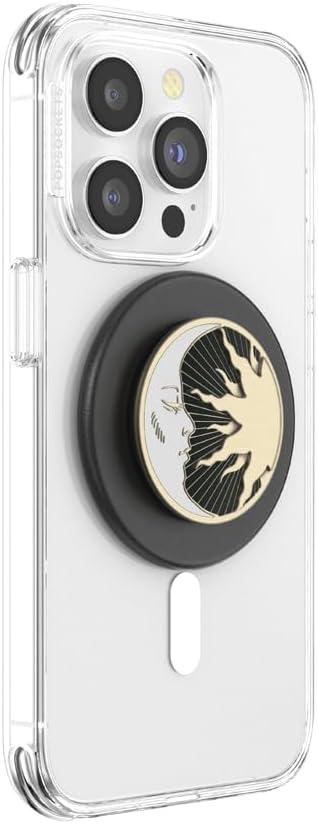 PopSockets Phone Grip for MagSafe with Kickstand, Magnetic Stand, Swappable Top, Secure Hold for iPhone MagSafe Cases, Phone & Tablet Grip – Enamel Celestial(Adhesive Sun and Moon)