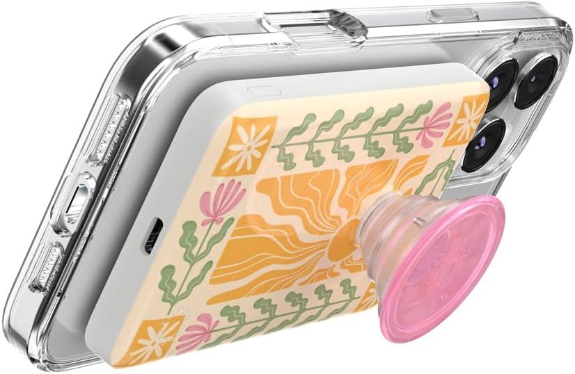 PopSockets PowerPack for MagSafe, Portable Phone Charger, Magnetic Wireless Portable Charger, 5000mAh – Eucalyptus(Desert Mosaic)