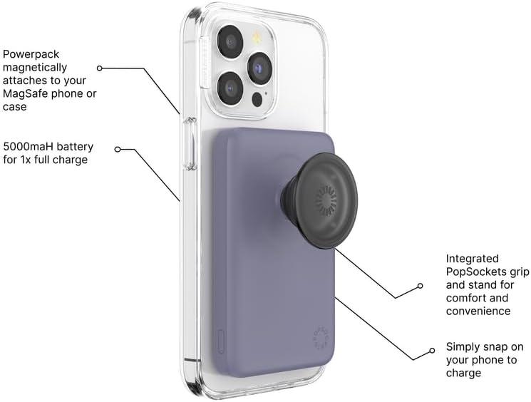 PopSockets PowerPack for MagSafe, Portable Phone Charger, Magnetic Wireless Portable Charger, 5000mAh – Eucalyptus(Dusk)