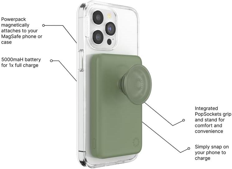 PopSockets PowerPack for MagSafe, Portable Phone Charger, Magnetic Wireless Portable Charger, 5000mAh – Eucalyptus(Eucalyptus)