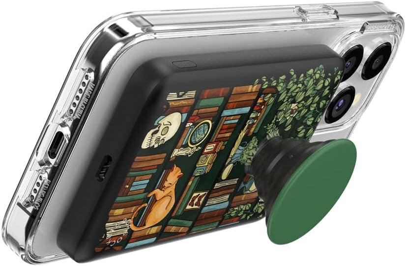 PopSockets PowerPack for MagSafe, Portable Phone Charger, Magnetic Wireless Portable Charger, 5000mAh – Eucalyptus(Spooky Book Club)