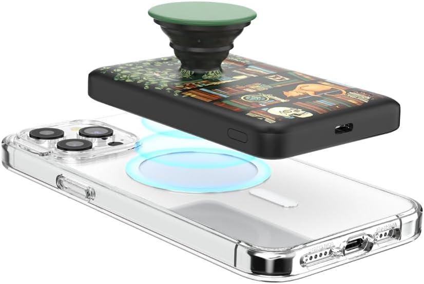 PopSockets PowerPack for MagSafe, Portable Phone Charger, Magnetic Wireless Portable Charger, 5000mAh – Eucalyptus(Curled Up With A Good Book)