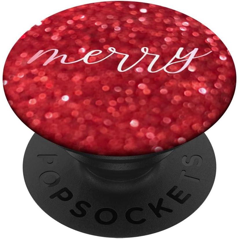 Merry Christmas Happy Holidays Red and White PopSockets Grip and Stand for Phones and Tablets PopSockets Adhesive PopGrip(Adhesive PopGrip)