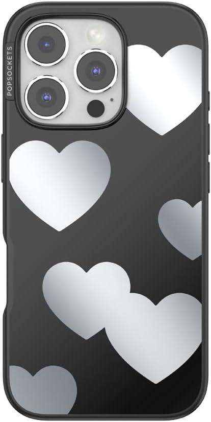 PopSockets iPhone 16 Case Compatible with MagSafe, Phone Case for iPhone 16, Wireless Charging Compatible, Case Only – Hearts Reflection(Hearts Reflection)