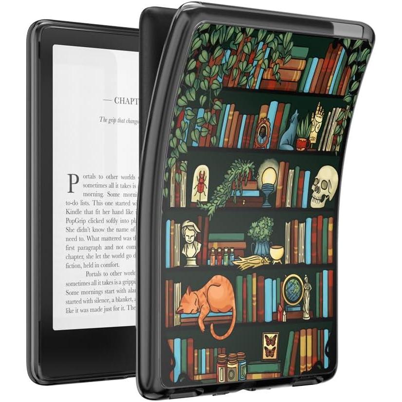 PopSockets Kindle Paperwhite 2021 Case (11th Gen, 6.8”) & Signature Edition – Slim Protective Cover with Built-in MagSafe-Compatible Ring for MagSafe PopGrip, E-Reader Accessory – Storied Shelves