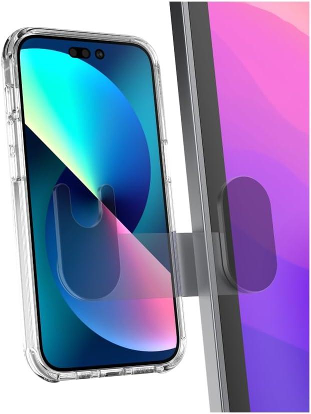 PopSockets mount for your laptop is the perfect phone stand for convenient usage of your phone and laptop. Slide your phone with your PopSockets phone grip into the laptop mount. Phone must have a PopSockets adhesive PopGrip, MagSafe PopGrips, PopWallet+, and MagSafe PopWallet+. The laptop mount is the perfect phone holder for desk. The mount is a single-time use only and is not repositionable. Mount to the left or right side of the laptop.