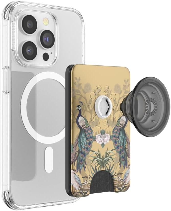 PopSockets Phone Wallet with Expanding Grip and Adapter Ring for MagSafe, Phone Card Holder, Wireless Charging Compatible, Wallet Compatible with MagSafe – Phantom Aspen(Secret Garden)