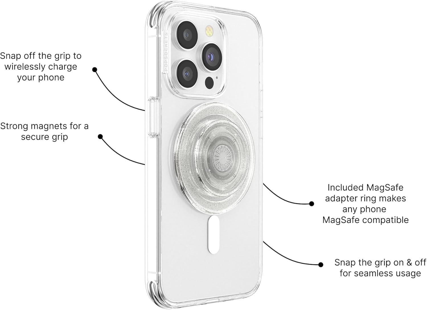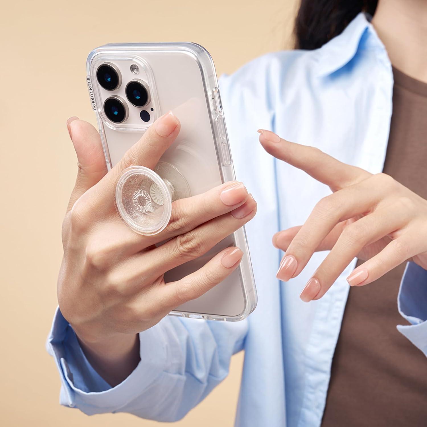 PopSockets Translucent Phone Grip with Expanding Kickstand, PopSockets for Phone, Translucent PopGrip – Chrome Drip Silver(Clear Glitter)